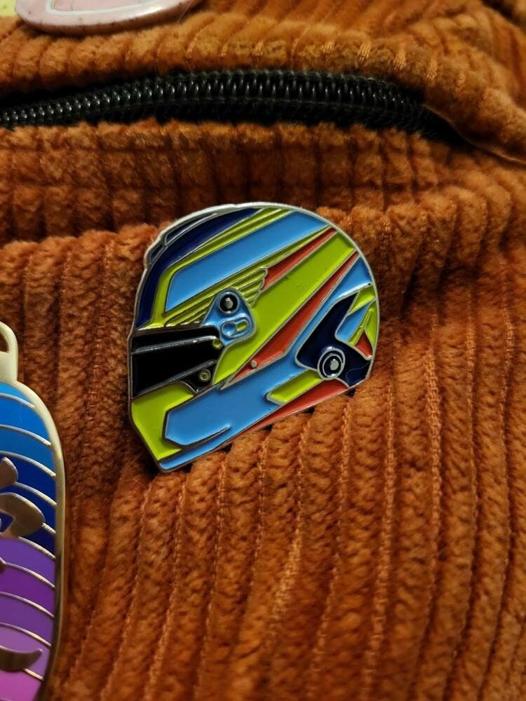 Get ready to show your support for the legendary Fernando Alonso with the Fernando Alonso 2023 helmet enamel pin, a must-have accessory for any Formula One fan or collector!