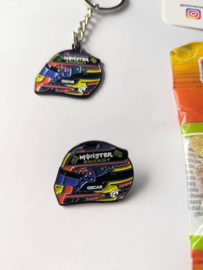 - Distinctive Design: This pin showcases the detailed design of Oscar Piastri's 2025 helmet, allowing fans to own a piece of his evolving racing identity. Let the instantly recognizable design, a symbol of his association with McLaren, grace your jacket, backpack, or any space where you celebrate the talent of this promising driver.